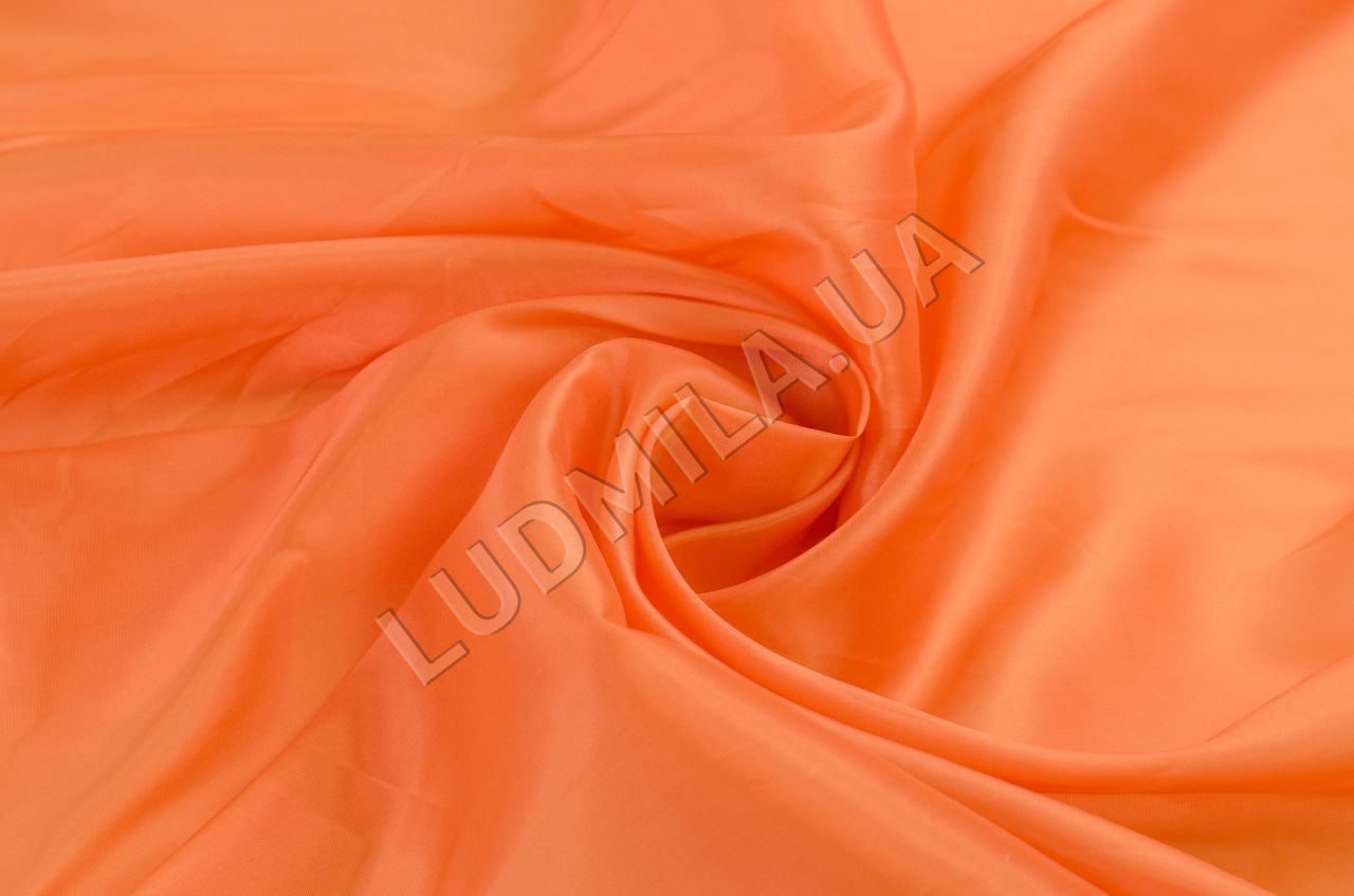 Легкая тонкая подкладка с отливом, неэластичная, прозрачная, гладкая, хорошо драпируется.;Применение: ткань для отделки изнаночной стороны одежды и аксессуаров.;Цвет: оранжевый.Плотность: 50 гр/м2.