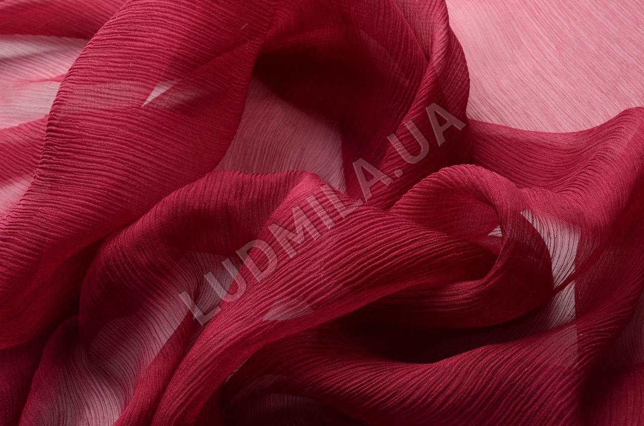 Натуральный шелковый крэш-шифон. Жатая, матовая, прозрачная ткань. Хорошо драпируется, приятная к телу.;Применение: ткань для платьев, блуз, драпировки.Цвет: фиолетово-бордовый.;