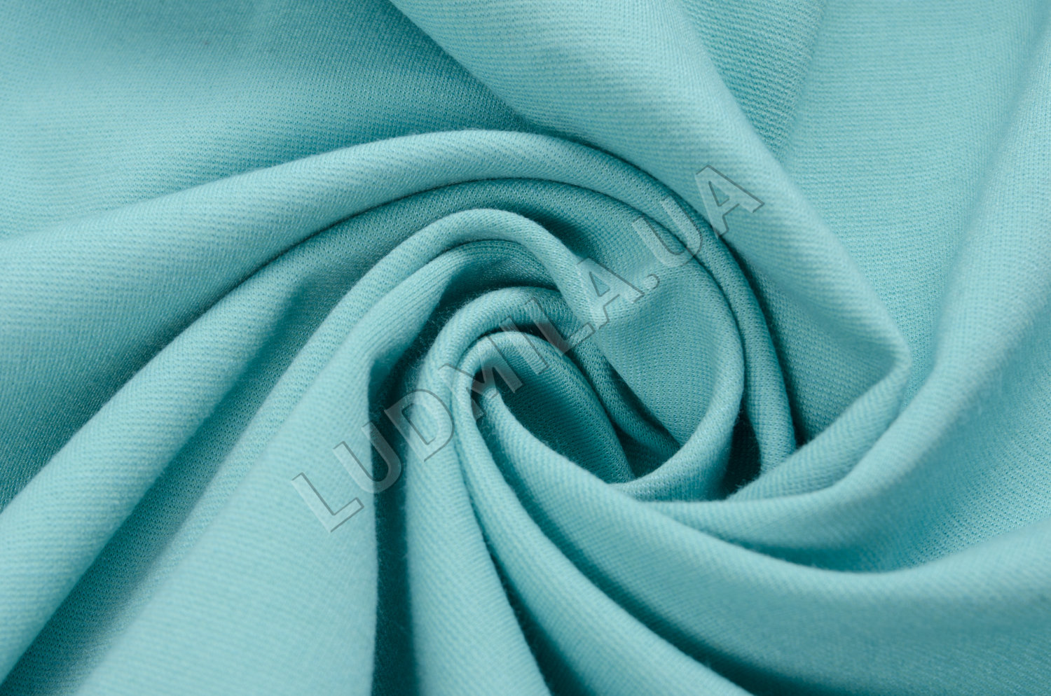 Трикотажная ткань `джерси`, плотная, бистрейчивая. Имеет матовую, приятную на ощупь поверхность, непрозрачная, пружинистая, утягивающая. Применение: ткань для костюмов, платьев, юбок.Цвет: мятный.