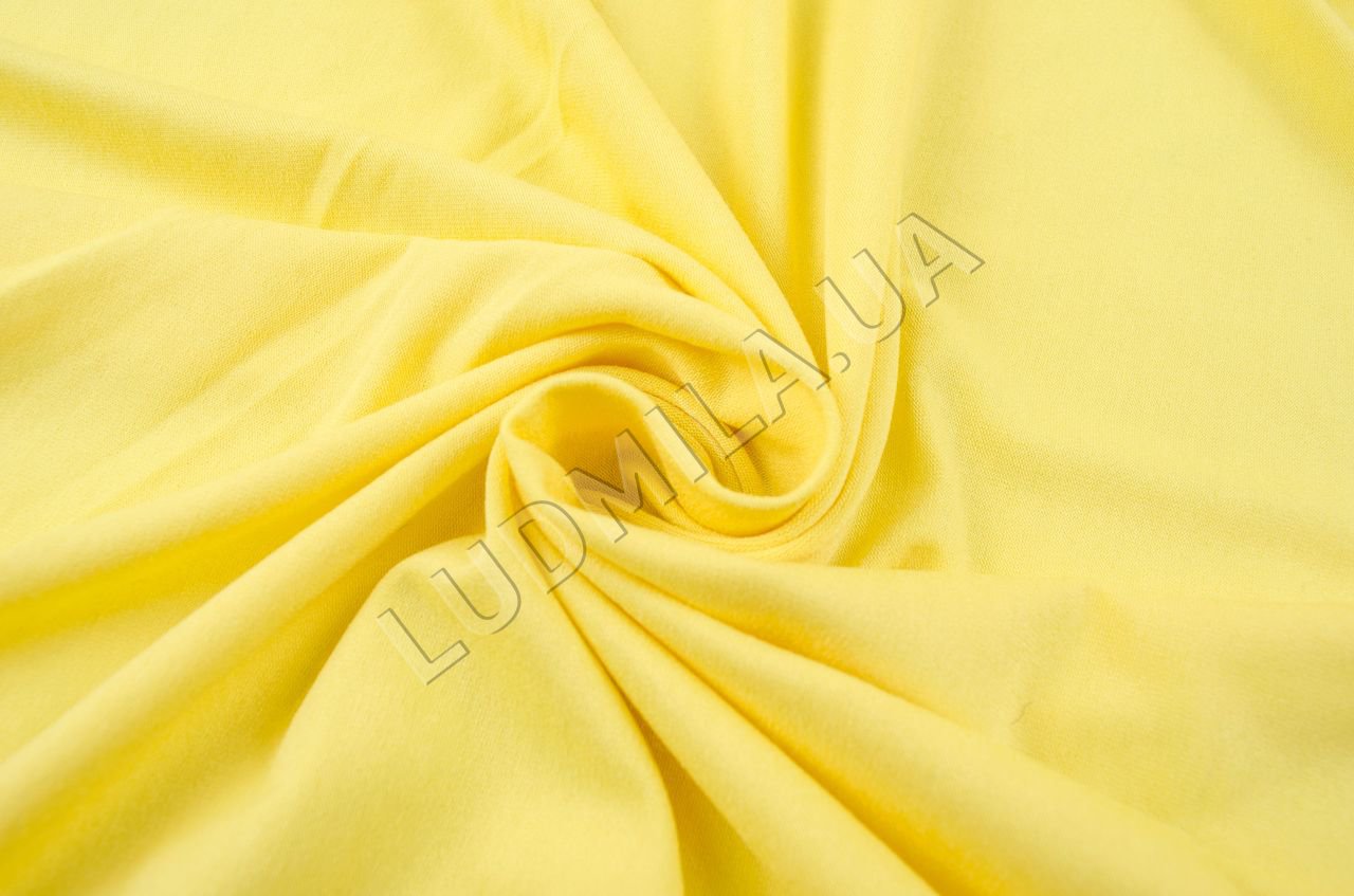Трикотаж средней плотности, эластичный, полупрозрачный при растяжении. Ткань гладкая, с легким отливом, приятная на ощупь, хорошо драпируется.;Применение: ткань для пуловеров, футболок, топов.Цвет: лимонный.Плотность: 190 гр/м2.;